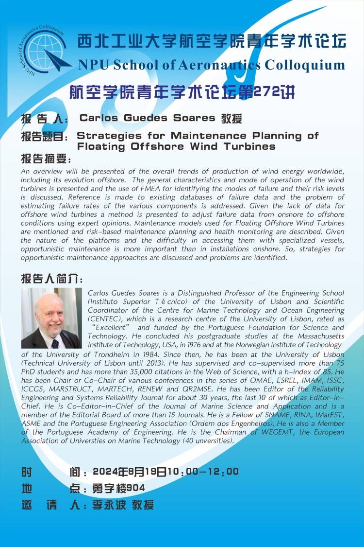 O Professor Guedes Soares deu uma palestra sobre “Simulation methods for the assessment of reliability of structural and mechanical systems” na Northwestern Polytechnical University em Xi’an, China no dia 13 de Junho de 2017.